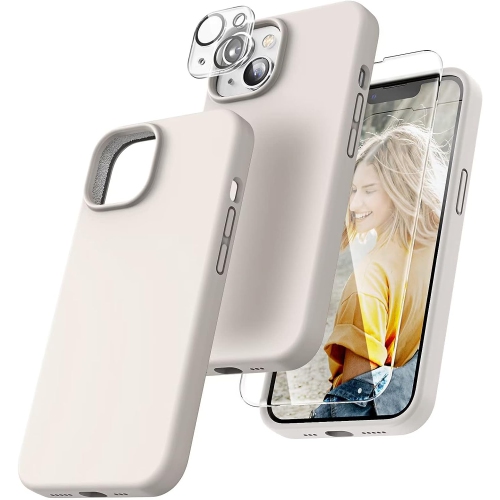 [5-en-1] pour étui 14 de iPhone, avec paquet de 2 protecteurs d'écran + paquet de 2 protecteurs d'objectif pour appareil photo, silicone liquide mince