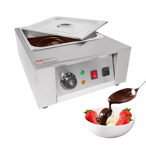 Avec cette marmite à 1 réservoirs en acier inoxydable, il est possible de se réchauffer à 8 kg de chocolat et d'autres ingrédients sucrés comme des bonbons, etc. La machine est électrique et équipée d'un système de chauffage à l'eau. En raison de matériaux de haute qualité, l'appareil est fiable et peut être utilisé à la maison ou dans une entreprise de boulangerie, de gâteau et de chocolat. La machine est élégante et magnifique dans n'importe quel intérieur.