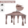 Abri de jardin Outsunny, 10 x 13 pi, abri pare-soleil extérieur à toit de jardin à 2 niveaux avec rideaux, kaki