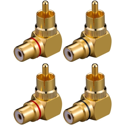 Adaptateur RCA à angle droit - connecteur RCA mâle à femelle plaqué or 90 degrés pour téléviseur mural comme économiseur d’espace (4 PC)