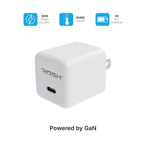 Adaptateur d'alimentation à chargement rapide mural de type C Rush | Chargeur GaN | 30 W