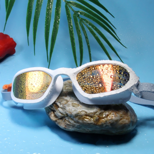 Adult large frame swimming goggles professional anti-fog high-definition swimming goggles waterproof adult swimming goggles red gold-plated white gray - transparent mirror box