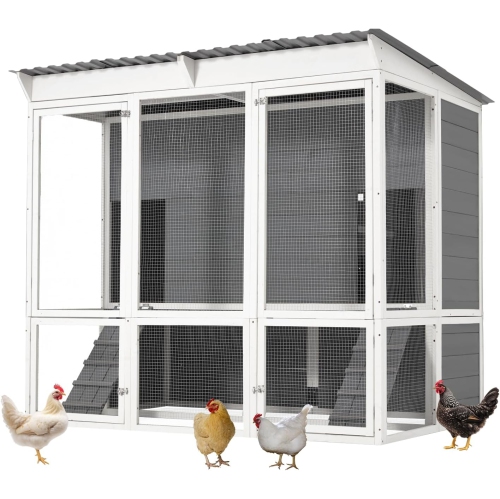 Sécurité et durabilité -- Toutes les portes de notre huche à poulet sont équipées de loquets en métal, offrant une protection contre les évasions et les prédateurs. Le cadre est fait de bois durable et résistant à la pourriture, et le treillis métallique est serré pour empêcher efficacement les ratons laveurs, les renards, etc.