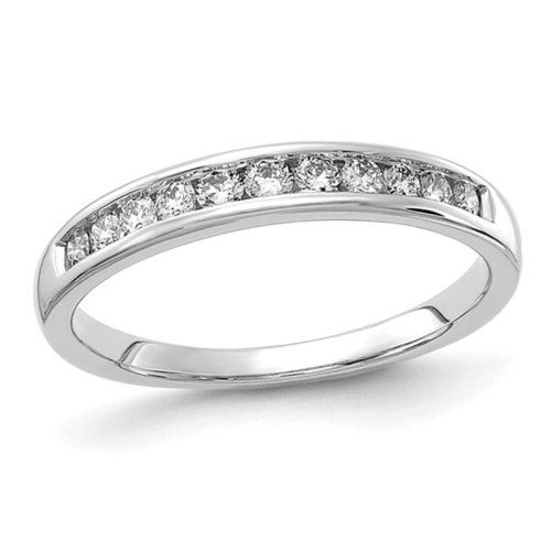 Cette alliance classique avec diamants est faite d'or blanc 14 ct poli étincelant avec 11 diamants étincelants de qualité professionnelle de 0,33 ct (VS2-SI1, D-E-F) pour compléter le style. Les diamants cultivés en laboratoire sont des diamants synthétiques qui sont chimiquement, physiquement et optiquement identiques aux diamants provenant de la nature. Les deux ont la même composition chimique et la même structure atomique, produisant le