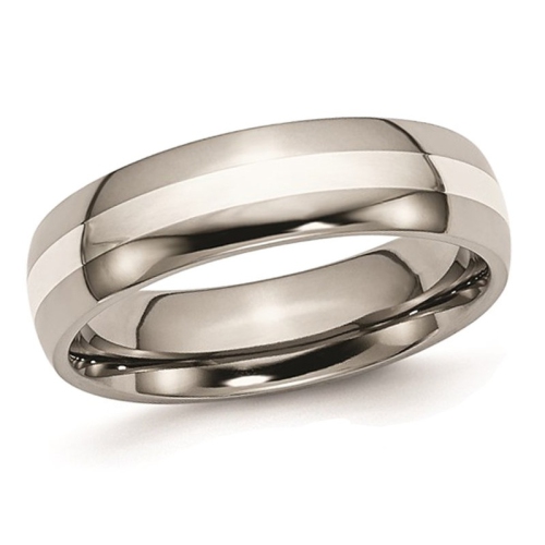 Alliance homme ou femme, titane, coupe confortable, 6 mm, incrustation argent sterling