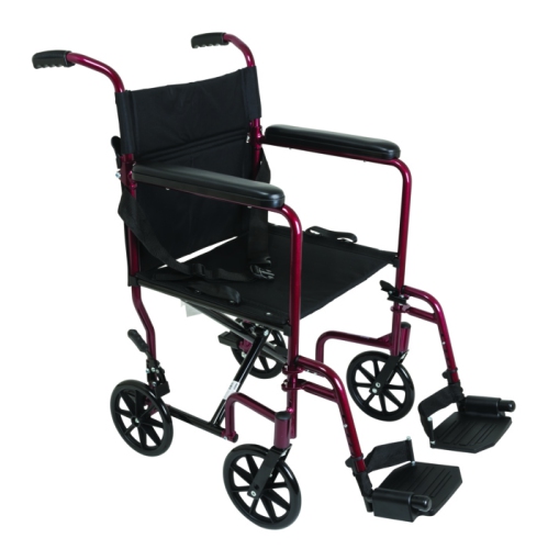 Aluminum 19" Transport Wheelchair, Burgundy w/ Footrest