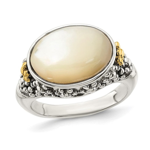 Anneau de nacre blanc en argent sterling avec des accents d'or 14 000