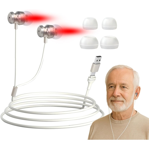 Appareil de thérapie à la lumière rouge, 650 nm thérapeutique à la lumière rouge pour les oreilles avec USB et type C, Écouteurs boutons portatifs suspendus de thérapie à lumière rouge pour Tinnitus