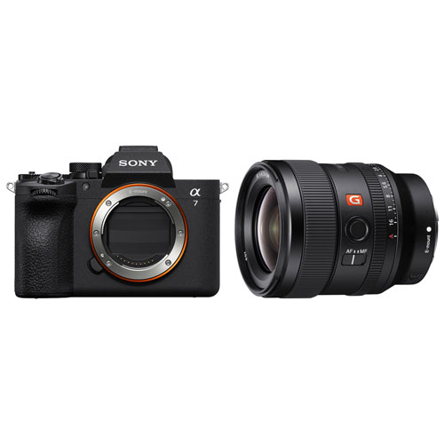 Immortalisez du contenu éclatant grâce à cet ensemble de Sony, qui comprend l'appareil photo sans miroir plein format Alpha 7 V et l'objectif 24 mm f/1,4 GM.