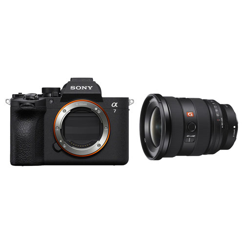 Immortalisez du contenu éclatant grâce à cet ensemble de Sony, qui comprend l'appareil photo sans miroir plein format Alpha 7 V et l'objectif plein format à monture E FE 16-35 mm f/2,8 GM II.
