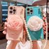Apple iPhone 11 Women Wrist Chain Bracelet Heavy Duty Case Luxury Silicone Flower Cover (Pink)