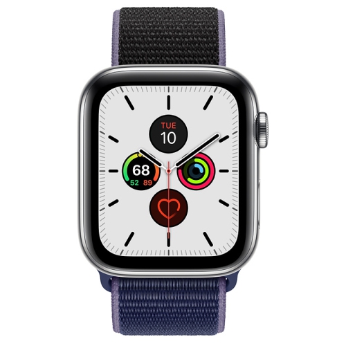 Apple Watch Series 5 (GPS + Cellular) avec boîtier 40 mm acier inoxydable argenté et bracelet sport bleu minuit - Certifié remis à neuf