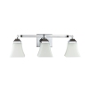 Les lignes carrées de ce luminaire à 3 ampoules lui donnent un style traditionnel simple. un fini chromé brillant et des abat-jour évasés ajoutent un style rétro discret à un miroir de salle de bain. le verre givré offre une lumière douce et diffuse provenant des ampoules DEL brillantes.
