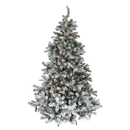 Sapin de Noël artificiel émeraude naturelle floqué PRÉLIT. Éclairage avec 600 lumières blanches chaudes transparentes; arbre à profil moyen. Les lampes sont dotées d’un verrou pour les lampes pour un ajustement parfait