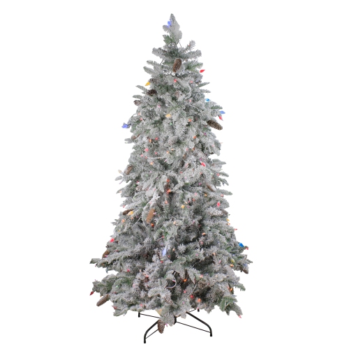 Arbre de Noël artificiel fin en épinette illuminée floquée de 6.5 pi – ampoules multicolores