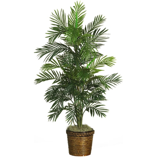 Arbre en soie avec palmier Areca de 56 po avec panier, presque naturel, vert/brun