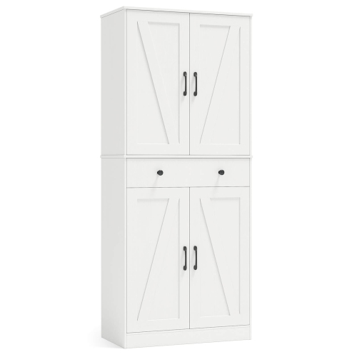 Armoire de cuisine moderne Farmhouse de 72 po de Costway avec 4 portes de grange brun/blanc/noir