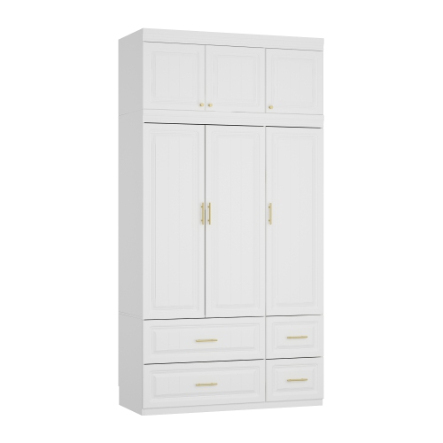 Ajoutez un style raffiné et un maximum de fonctionnalité à votre chambre avec notre armoire garde-robe moderne blanc – une fusion parfaite d'élégance intemporelle et de commodité au quotidien. Conçue avec une attention méticuleuse aux détails, cette garde-robe est dotée d'un élégant fini blanc rehaussé par des moulures de style européen et des poignées somptueuses couleur sable doré. Conçu pour offrir amplement d'espace de rangement sans sacrifier l'esthétique, il est doté de plusieurs tiroirs et tablettes.