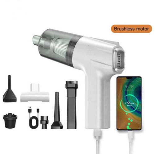 Aspirateur pour l'auto, aspirateur pour l'auto avec puissance d'aspiration élevée, aspirateur sans fil domestique petit et puissant3101-E-Moteur sans balais-Blanc silencieux (recharge numérique)
