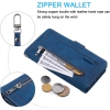 ATLAS Étui portefeuille en cuir de qualité supérieure pour iPhone 14 avec 9 emplacements pour carte d'identité et cartes de crédit avec poche latérale pour espèces-Bleu