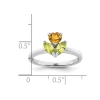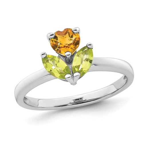 Bague 4/5 carat (ct) en forme de coeur, citrine et péridot en forme de fleur, argent sterling