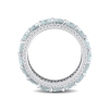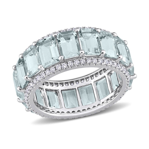 Cette magnifique bague de fidélité est faite d'or blanc de 14 ct. Cette luxueuse alliance de style anniversaire est dotée de 16 aigues-marines octogonales et de 100 diamants blancs ronds étincelants dans un style de fidélité unique à trois rangées. Cette alliance éternité audacieuse ajoutera certainement une touche d'élégance à n'importe quelle tenue. Rehaussée par un fini hautement poli, cette pierre précieuse extraordinaire et cette pierre de diamant