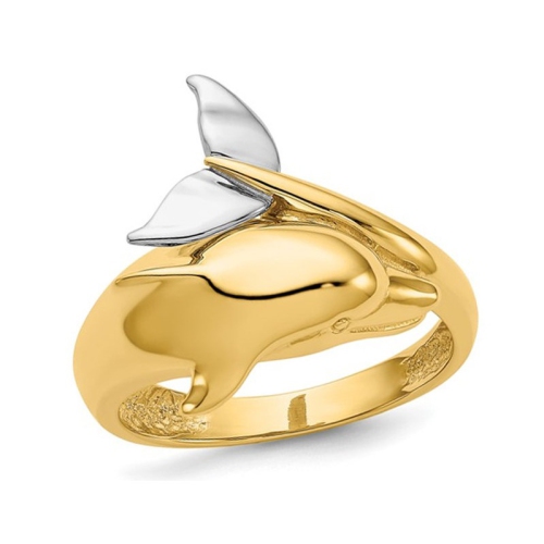 Bague dauphin en or jaune et blanc poli de 14K ct