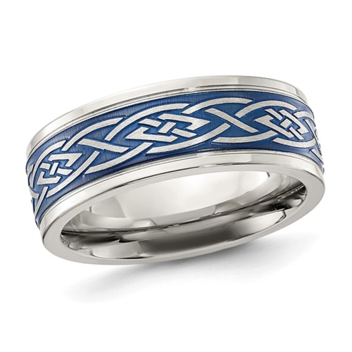 Bague de bande celtique plaqu?? bleu en acier inoxydable (8,00 mm)