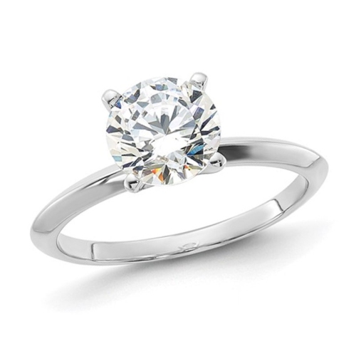 Une bague simple et magnifique. Cette bague de fiançailles est ornée d'un zircon cubique synthétique rond brillant à 4 griffes 7,5 mm en son centre, le tout serti sur de l'argent sterling poli élégant. Ce modèle classique de solitaire est doté d'une zircon cubique synthétique transparent rond brillant.