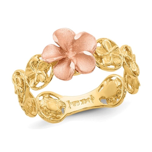 Bague de fleur de plumeria en or jaune et rose 14K