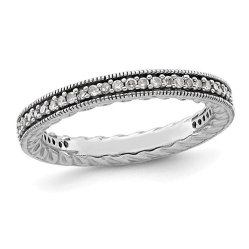 L'argent sterling poli est la base d'une superbe bague de mariage à diamants dotée de diamants sertis en bande pour un poids total de diamants de 1 ct/3 carat (ct). Il s'agit d'une alliance à diamants magnifique et classique qu'elle sera fière de porter.