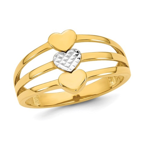 Bague de promesse en or jaune 14 K à trois coeurs hautement polis (TAILLE 7)