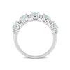 Faites un choix élégant avec cette superbe bague d'anniversaire empilable avec aigue-marine et topaze blanche ultralégère. Faite d'argent sterling étincelant, cette bague est dotée de cinq aigues-marines rondes chatoyantes (4 4 mm) et de 12 topazes blanches étincelantes à sertissure à griffes qui alternent entre elles. Fini poli. Un choix idéal pour un anniversaire de mars spécial dans votre vie.