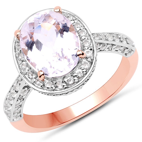 Bague en argent sterling plaqué or rose 14K ct avec Kunzite véritable et zircon blanc .925 ct d'3,86 carat