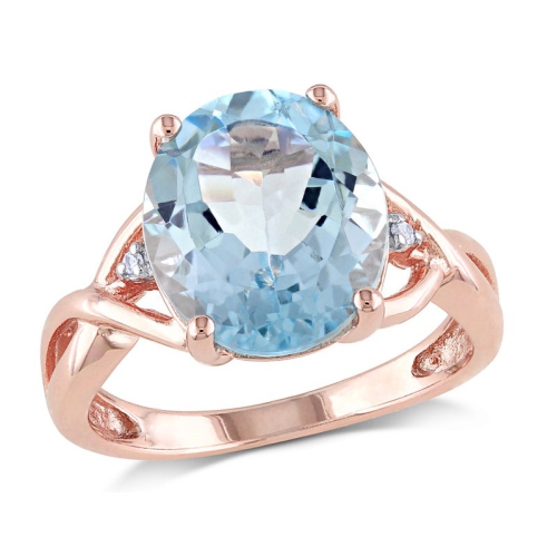 Cette élégante bague est ornée d’une topaze bleu ciel ovale au centre de 5.50 carats (ct), avec deux diamants décoratifs blancs. Cette jolie bague de fiançailles est sertie dans de l’argent plaqué rose au fini hautement poli.
