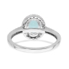 Aigue-marine ovale de 1.00 ct (ct) la pierre de naissance du mois de mars est supportée par une sertissure en or blanc de 14 ct brillant en halo de diamants ronds brillants et étincelants de 3/10 ct.