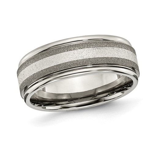 Bague homme en titane avec incrustation en argent sterling et fini pierre (8,00 mm)