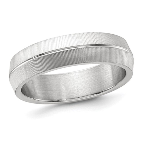 Superbe dans sa simplicité élégante, cette bague 6,00 mm est en titane poli et texturée, et peut être portée en tout temps, ce qui en fait un bracelet pour homme très spécial. Cet anneau en titane pèse 3,00 grammes.