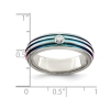 Cette bague en titane avec anneau en 6 mm arbore un style unique et intègre un motif à trois rainures arc-en-ciel avec un magnifique saphir blanc au centre. Une bague pour hommes très avant-gardiste qu'il sera fier de montrer. Cette bague en titane pèse 3,20 grammes.