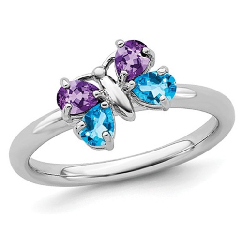 Bague papillon en argent sterling, améthyste naturelle et topaze bleue 2/3 ct (ct)