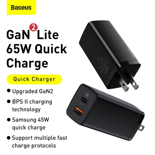 Baseus 65W GaN2 Lite Quick Charger USB-C USB-A White