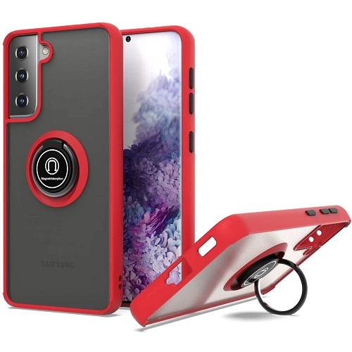 Béquille à anneau métallique rotatif TopSave 360, étui de protection antichoc en caoutchouc hybride mat transparent pour Samsung S21 5G 6.3 ", rouge
