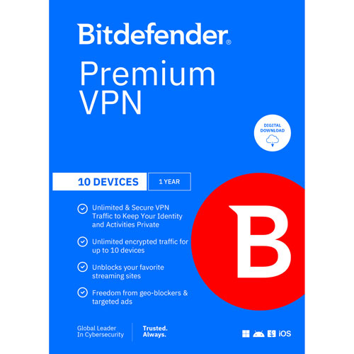 Bitdefender Premium VPN (PC/Mac/iOS/Android) - 10 appareils - 1 utilisateur - 1 an - Téléchargement numérique