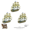 Black Seas : Marine française  3ᵉ Taux de Renommée Cet ensemble vous habille avec trois navires de la marine française tiers à taux de renommée. S'appuyant sur les superbes ressorts en plastique de troisième vitesse, la boîte contient des composants métalliques supplémentaires pour faire les célèbres vaisseaux suivants, tous présents à la bataille de Trafa...