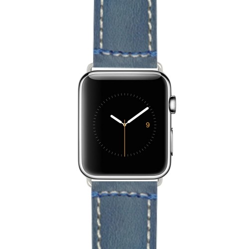 Bleu, Bracelet de montre 42mm pour Apple Watch de luxe pour hommes en cuir véritable, couture double, pour Séries 1, 2 et 3
