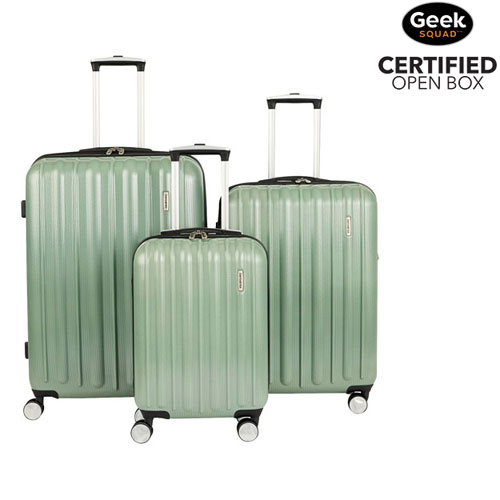 Voyagez avec style grâce à l'ensemble de trois valises rigides extensibles Quarry de Samsonite. Composé d'une grande valise à roulettes, d'une valise moyenne à roulettes et d'un bagage de cabine à roulettes, cet ensemble offre toute la capacité dont vous avez besoin pour un court ou un long voyage.Boîte ouverte certifié par la Geek Squad