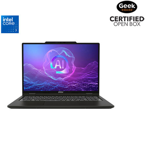 Jouez à des jeux sophistiqués et créez du contenu poussé à l'aide du portable de jeu VenturePro de MSI. Doté d'un processeur Core 7-240H d'Intel et d'une mémoire DDR5 de 32 Go, il exécute aisément plusieurs tâches à la fois et fonctionne sans la moindre difficulté. Le disque SSD de 1 To offre un espace de stockage rapide et fiable. Le processeur graphique GeForce RTX 5060 de NVIDIA avec 8 Go de mémoire vidéo dédiée assure la fluidité et la splendeur des images.Boîte ouverte certifié par la Geek Squad