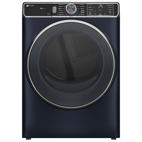Faites la lessive plus rapidement avec la sécheuse électrique à vapeur de 7,8 pi³ Profile de GE. Elle est dotée d'une option de séchage rapide idéale pour sécher plus vite les petites brassées. La fonction de liaison de laveuse sans fil vous permet de connecter la laveuse (vendue séparément) et la sécheuse, pour une utilisation facile. La notification de vérification de l'évacuation veille à la sécurité en vous avertissant lorsque le conduit doit être nettoyé.Boîte ouverte - Sécheuse électrique à vapeur de 7,8 pi³ Profile de GE (PFD87ESMVRS) - Bleu saphir - Endommagé