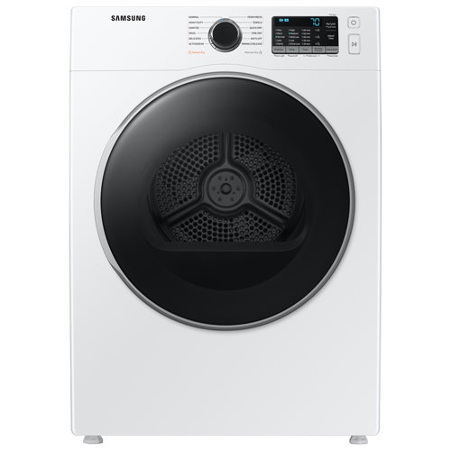 Gardez vos vêtements à leur meilleur avec cette sécheuse électrique de Samsung. Cet appareil pratique sélectionne automatiquement le cycle de séchage optimal pour votre brassée, ce qui économise l'énergie et prévient le surséchage. Elle offre une généreuse capacité de 4 pi³, et est compacte et empilable.Boîte ouverte - Sécheuse électrique de 4 pi³ de Samsung (DV25B6800EW/AC) - Blanc - Endommagé