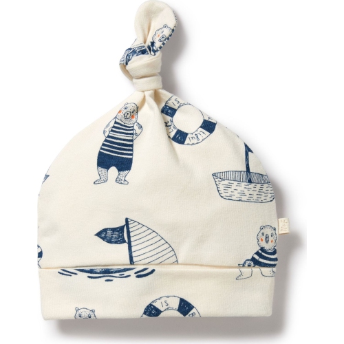 Bonnet en coton biologique Wilson+Frenchy avec noeud - Ours nautique (TP, nouveau-né)